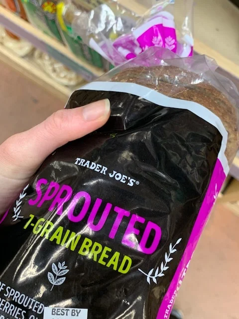 Trader Joes Sprouted 7 Grain Bread. It is amazing bread. How does this food fit into your daily goals.